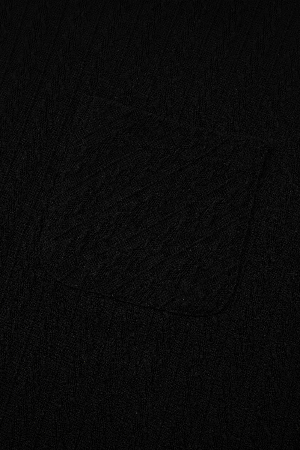 Black Textured Chest Pocket Long Sleeve Top 2Pcs Pants Set